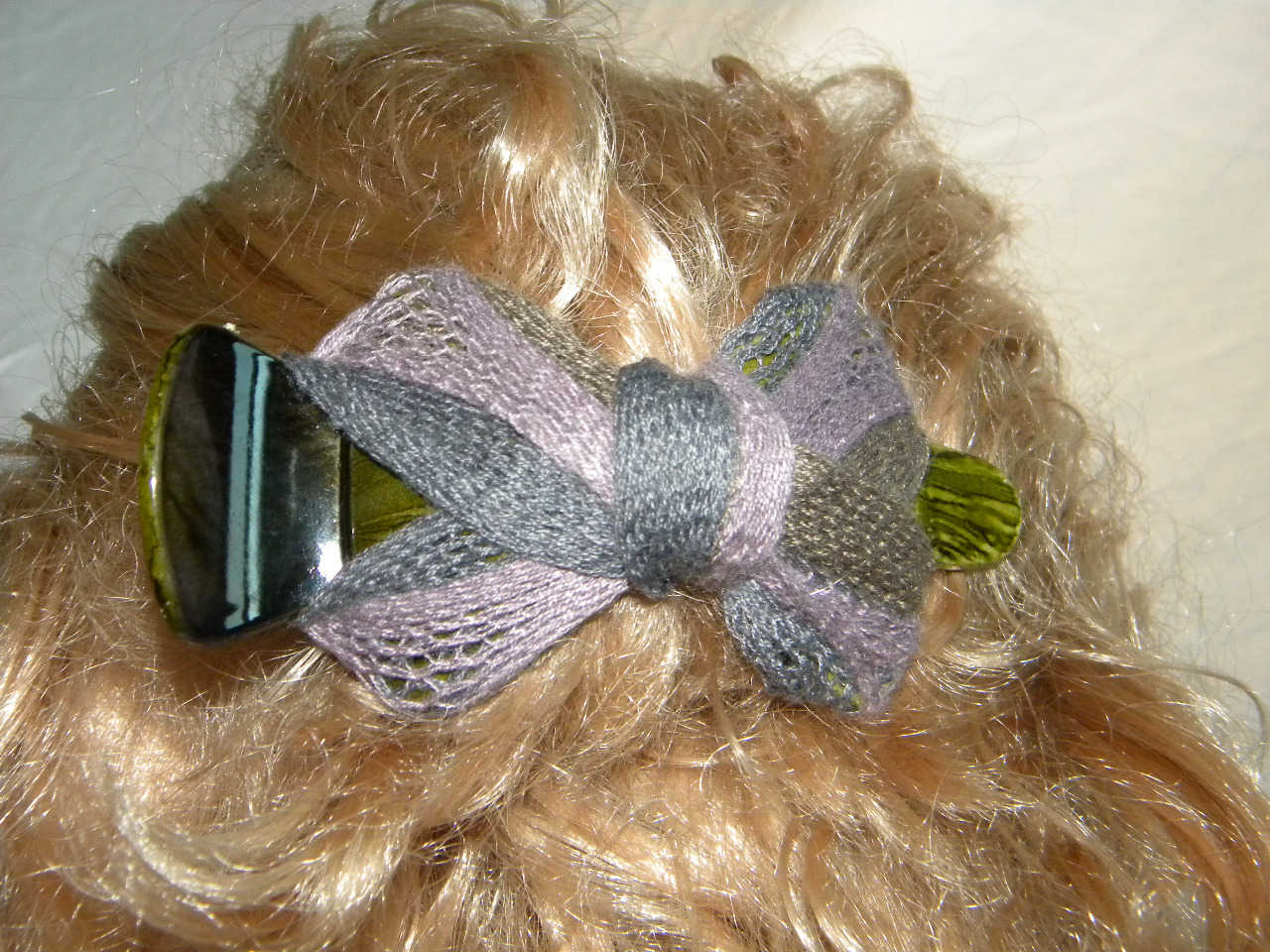 Spona potiahnutá čipkou/ priadzou, cena 2 eurá.